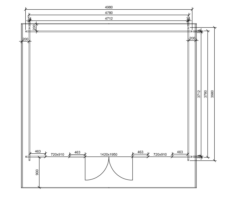 - Glassvindu, limt treramme med metall utvendig vinduskarm;