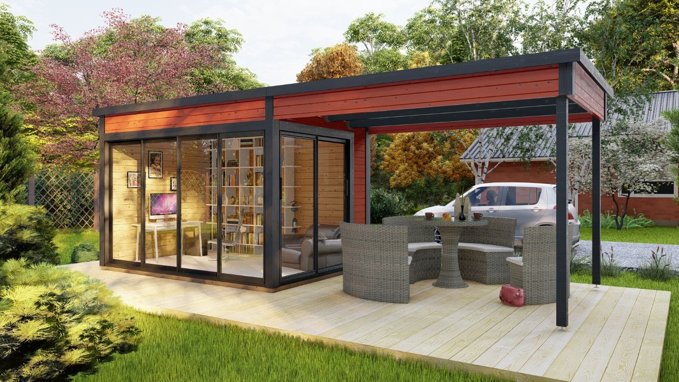 Hagekontor,lysthus, oransjeri - vår nye serie med moderne annekser med det bredeste bruksområdet! Dette luftige rommet med skyvedør lar deg nyte sommerens varme og sjarmerende dufter uten å forlate din favoritt loungestol eller sofa. I kaldt vær kan døren enkelt lukkes og blokkere vind og kulde ute, mens den fantastiske utsikten over hagen og området rundt forblir!