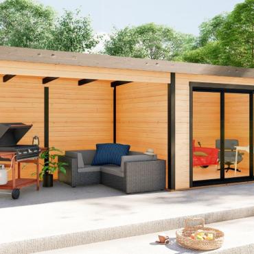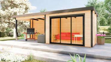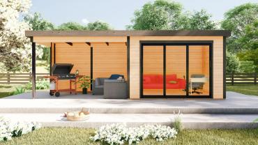 Hagekontor,lysthus, oransjeri - vår nye serie med moderne annekser med det bredeste bruksområdet! Dette luftige rommet med skyvedør lar deg nyte sommerens varme og sjarmerende dufter uten å forlate din favoritt loungestol eller sofa. I kaldt vær kan døren enkelt lukkes og blokkere vind og kulde ute, mens den fantastiske utsikten over hagen og området rundt forblir!