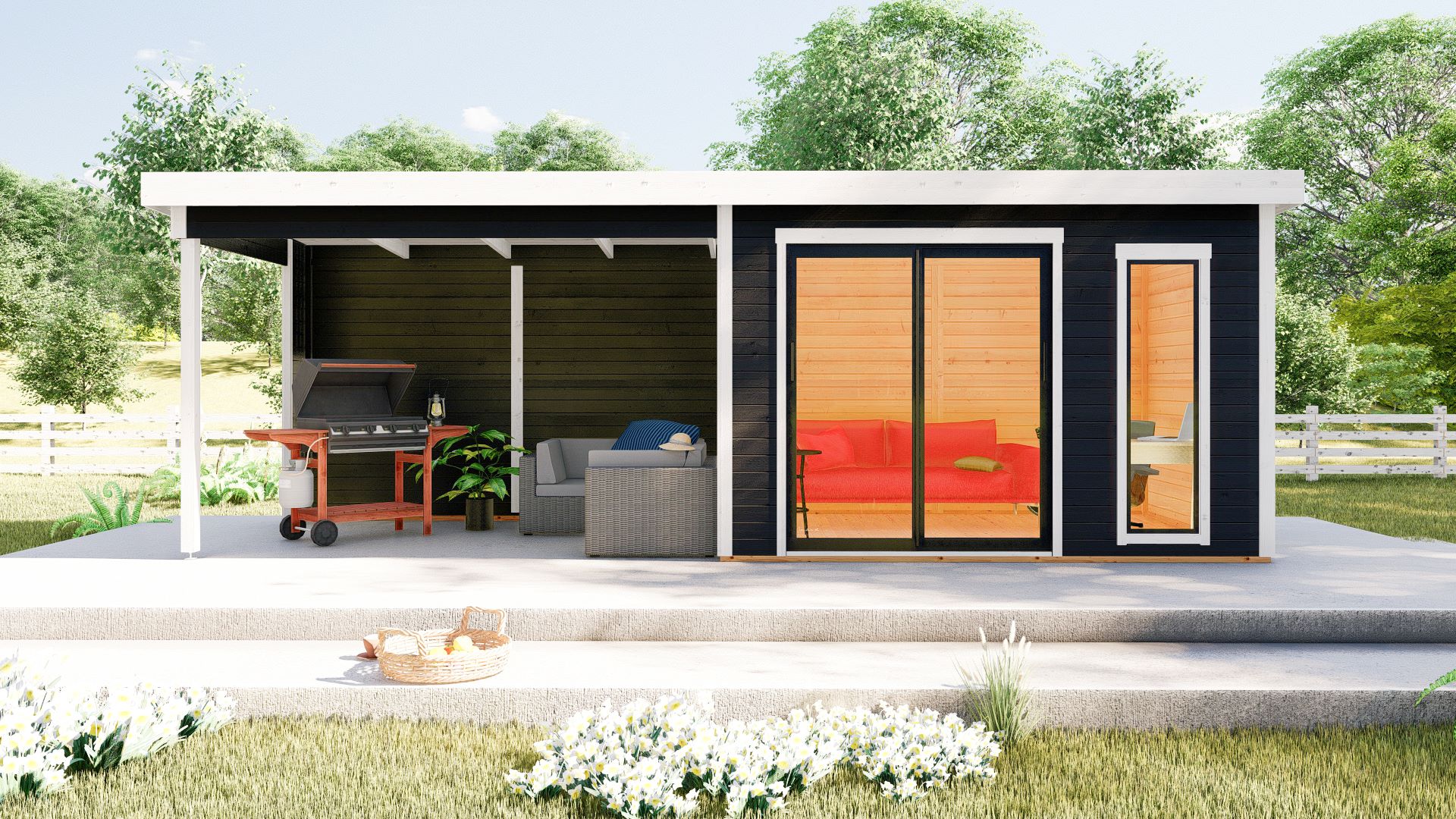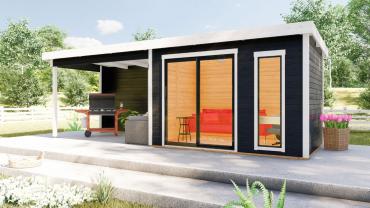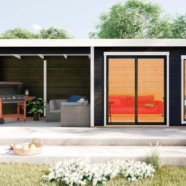 Hagekontor,lysthus, oransjeri - vår nye serie med moderne annekser med det bredeste bruksområdet! Dette luftige rommet med skyvedør lar deg nyte sommerens varme og sjarmerende dufter uten å forlate din favoritt loungestol eller sofa. I kaldt vær kan døren enkelt lukkes og blokkere vind og kulde ute, mens den fantastiske utsikten over hagen og området rundt forblir!