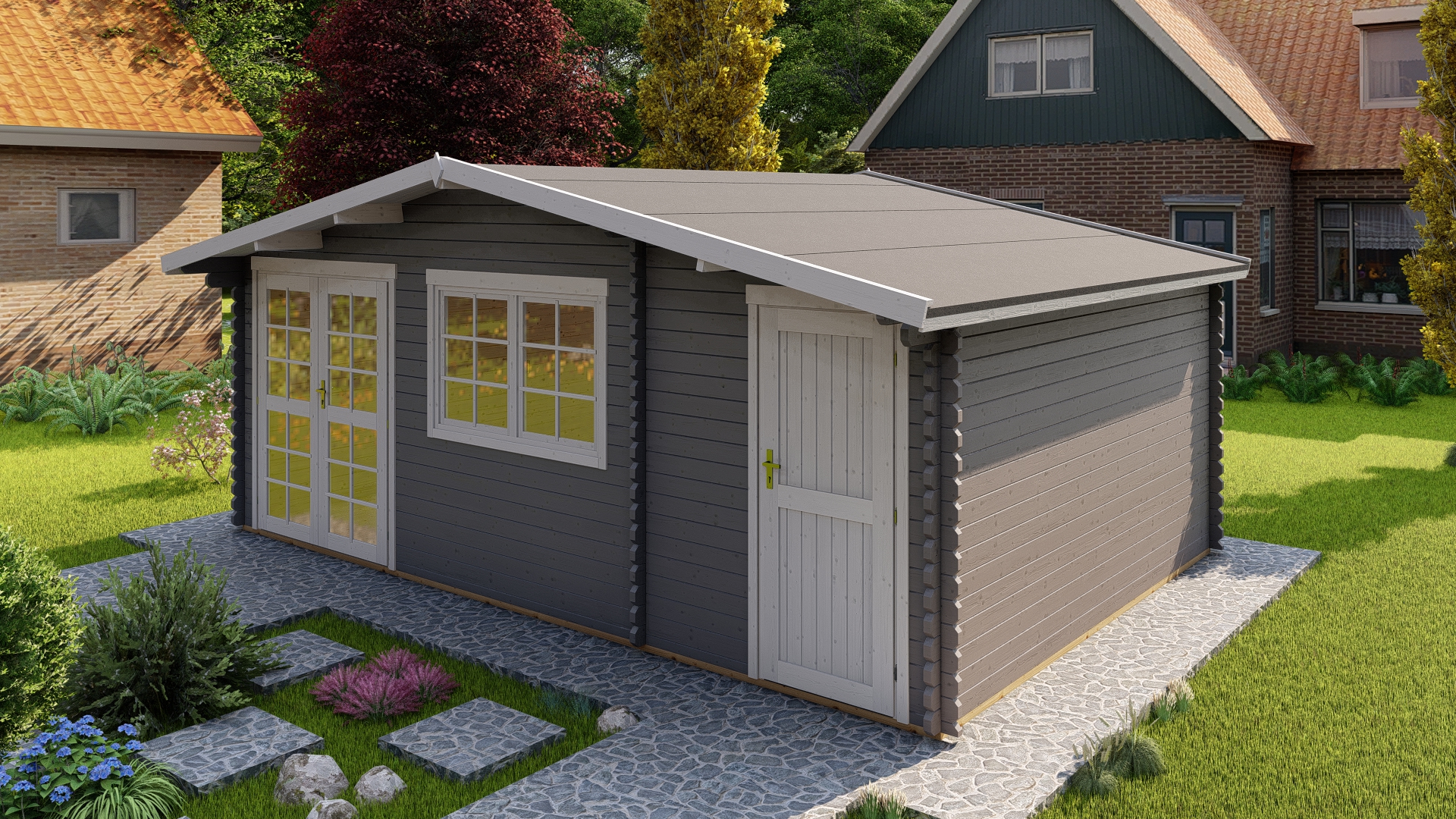 - Glassdør i limtre;