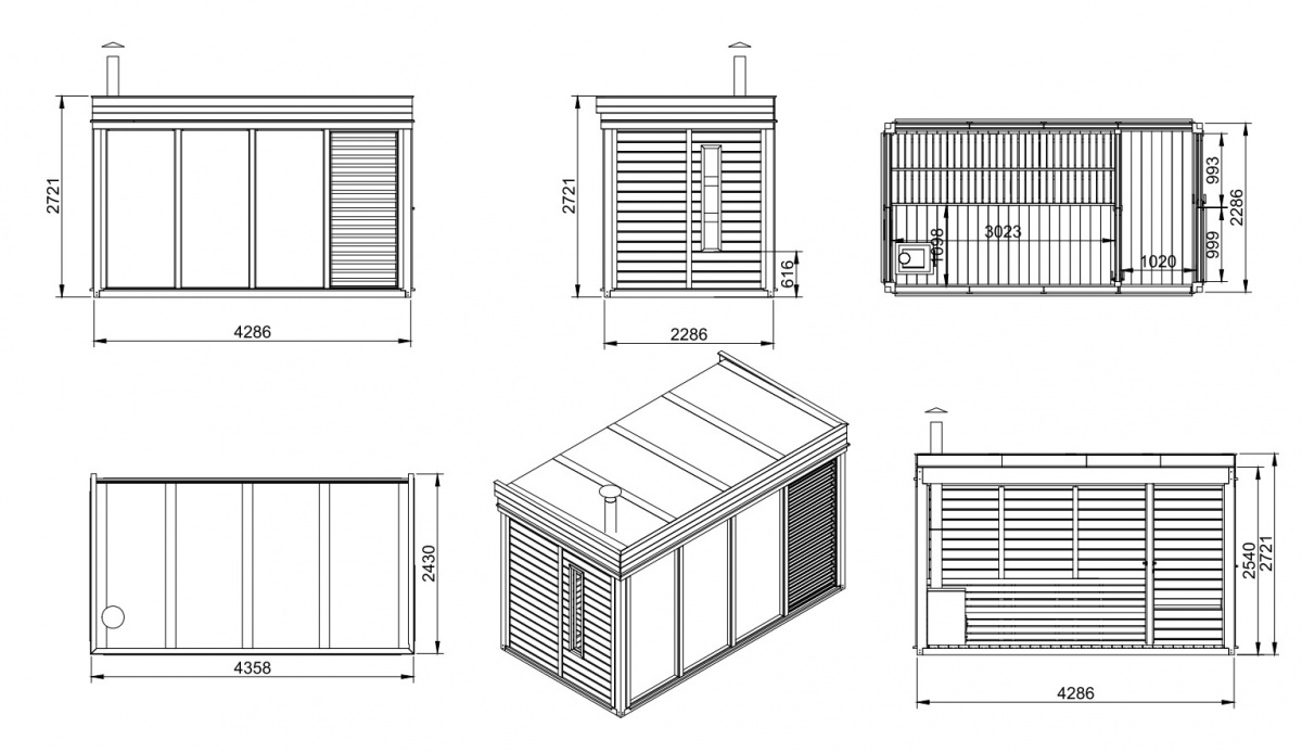 - Badstuepanelene er modulære (glasspaneler,paneler med vinduer, paneler med dører, paneler med trepersienner, skyvedører);