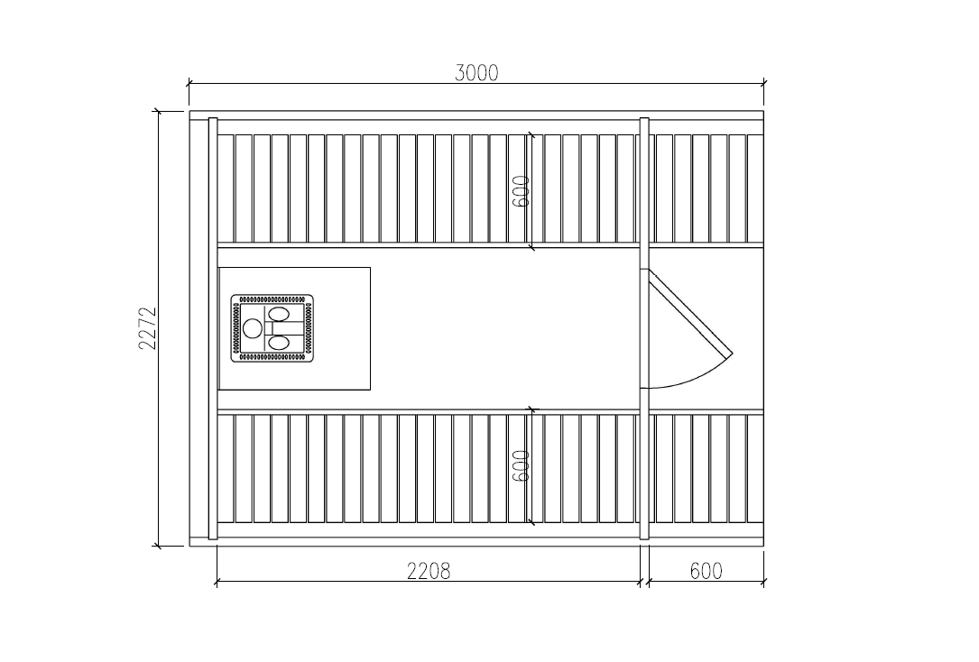 - Terrasse lengde: 0,6 m (i stedet for terrasse kan det utvides badstuedel med 0,6 m uten pristillegg)