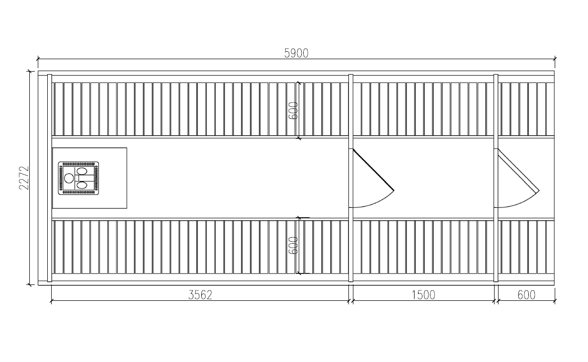 - Terrasse lengde: 0,6 m (i stedet for terrasse kan det utvides omkledningsrom eller badstuedel med 0,6 m uten pristillegg)