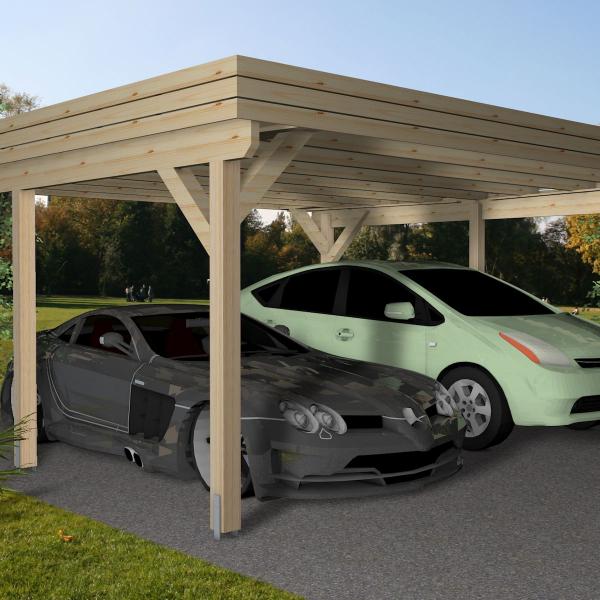 - Carport i limtre konstruksjon (70 % sterkere enn heltre):