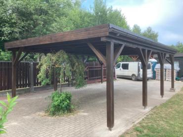 - Carport i limtre konstruksjon (70 % sterkere enn heltre):