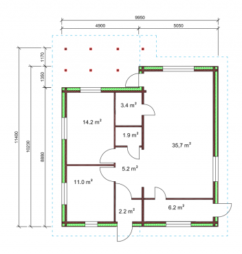 - Som fundament til terrassen (hvis en terrasse er planlagt) kommer høytrikkimpregnert bjelkelag.Terrasebord også høyttrykkimpregnerte;