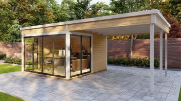 Hagekontor,lysthus, oransjeri - vår nye serie med moderne annekser med det bredeste bruksområdet! Dette luftige rommet med skyvedør lar deg nyte sommerens varme og sjarmerende dufter uten å forlate din favoritt loungestol eller sofa. I kaldt vær kan døren enkelt lukkes og blokkere vind og kulde ute, mens den fantastiske utsikten over hagen og området rundt forblir!