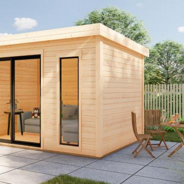 Hagekontor,lysthus, oransjeri - vår nye serie med moderne annekser med det bredeste bruksområdet! Dette luftige rommet med skyvedør lar deg nyte sommerens varme og sjarmerende dufter uten å forlate din favoritt loungestol eller sofa. I kaldt vær kan døren enkelt lukkes og blokkere vind og kulde ute, mens den fantastiske utsikten over hagen og området rundt forblir!