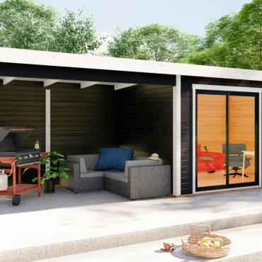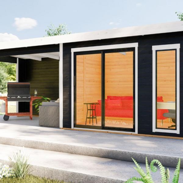 Hagekontor,lysthus, oransjeri - vår nye serie med moderne annekser med det bredeste bruksområdet! Dette luftige rommet med skyvedør lar deg nyte sommerens varme og sjarmerende dufter uten å forlate din favoritt loungestol eller sofa. I kaldt vær kan døren enkelt lukkes og blokkere vind og kulde ute, mens den fantastiske utsikten over hagen og området rundt forblir!