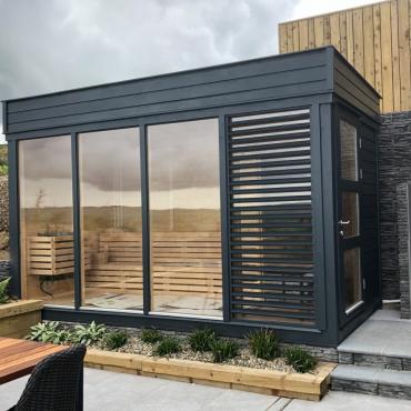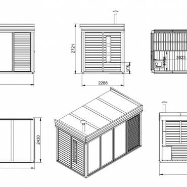 - Badstuepanelene er modulære (glasspaneler,paneler med vinduer, paneler med dører, paneler med trepersienner, skyvedører);