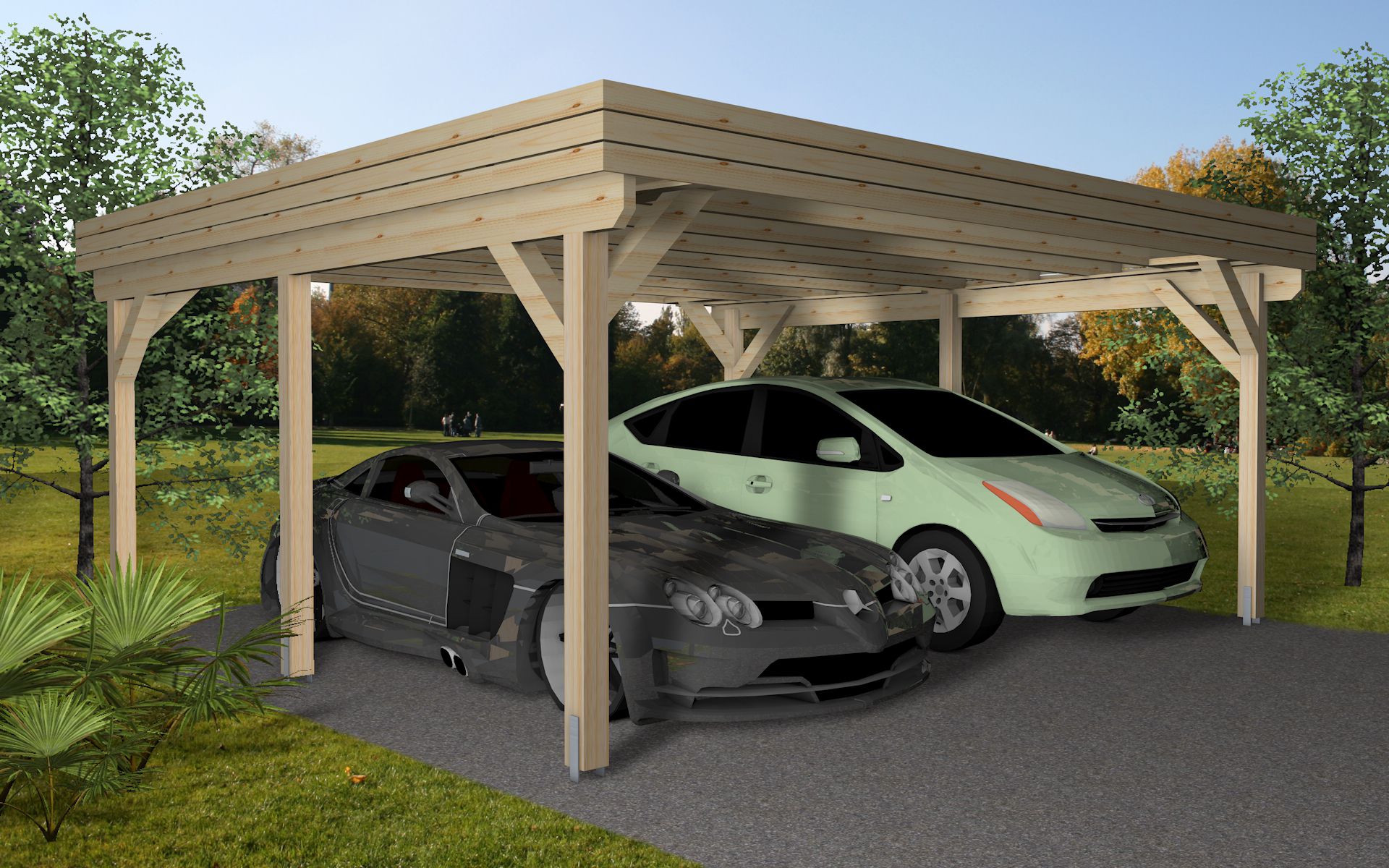 - Carport i limtre konstruksjon (70 % sterkere enn heltre):