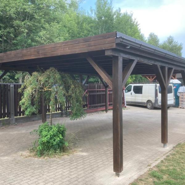 - Carport i limtre konstruksjon (70 % sterkere enn heltre):