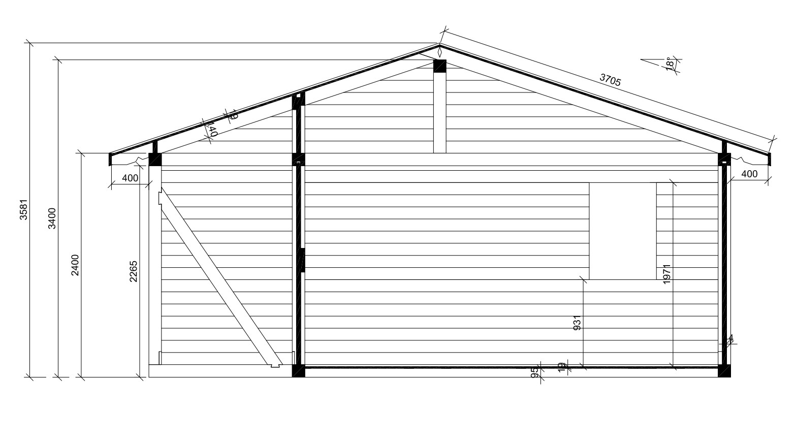 - Bjelkelag 45x95mm og gulv 19mm under bod;