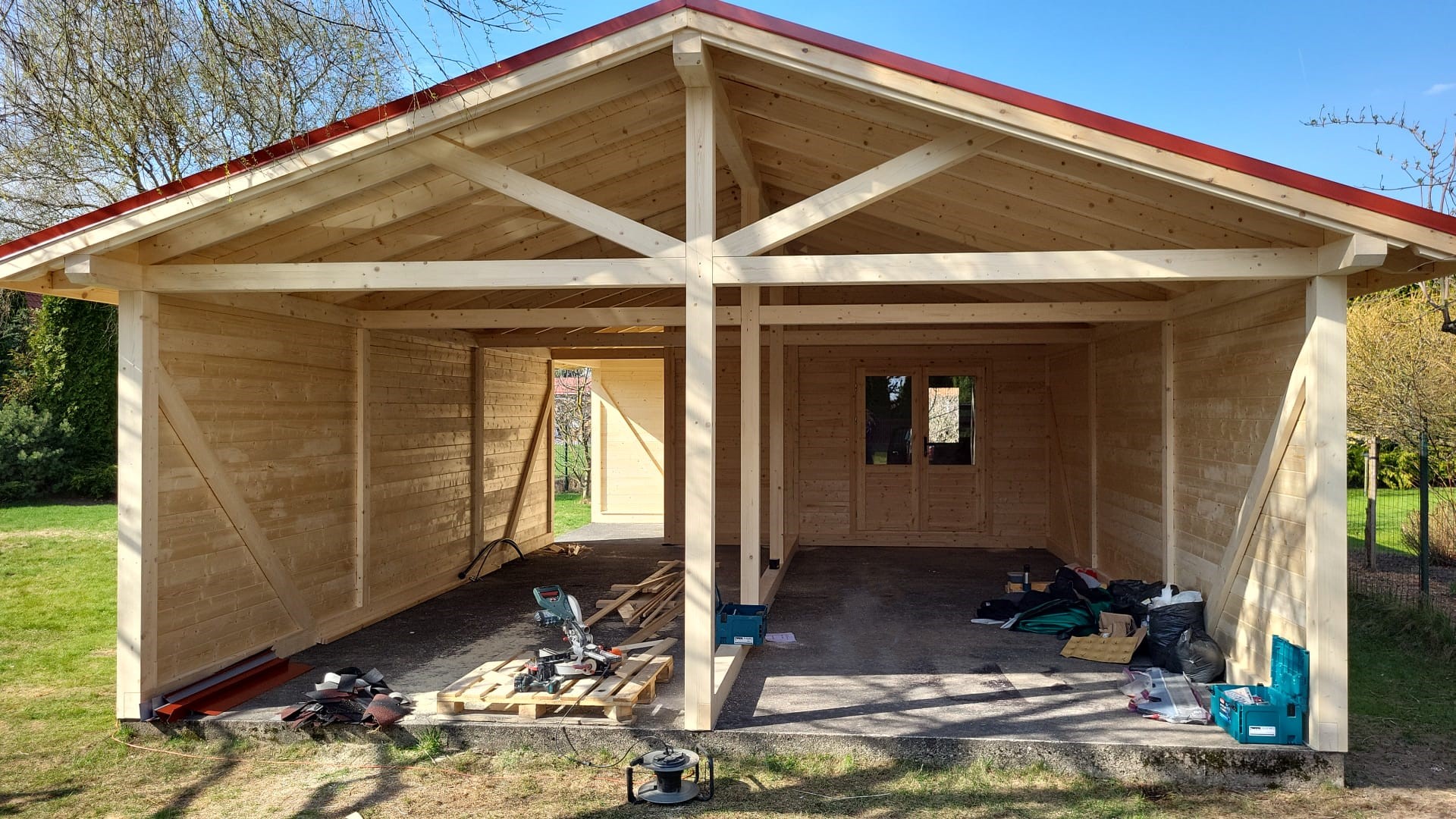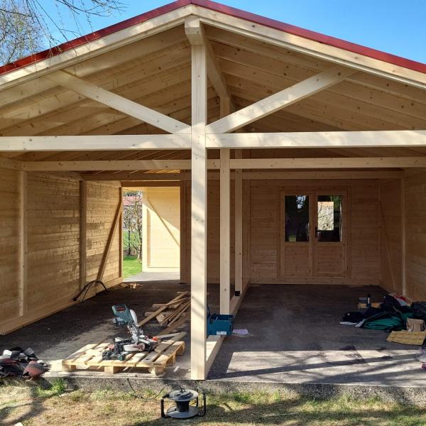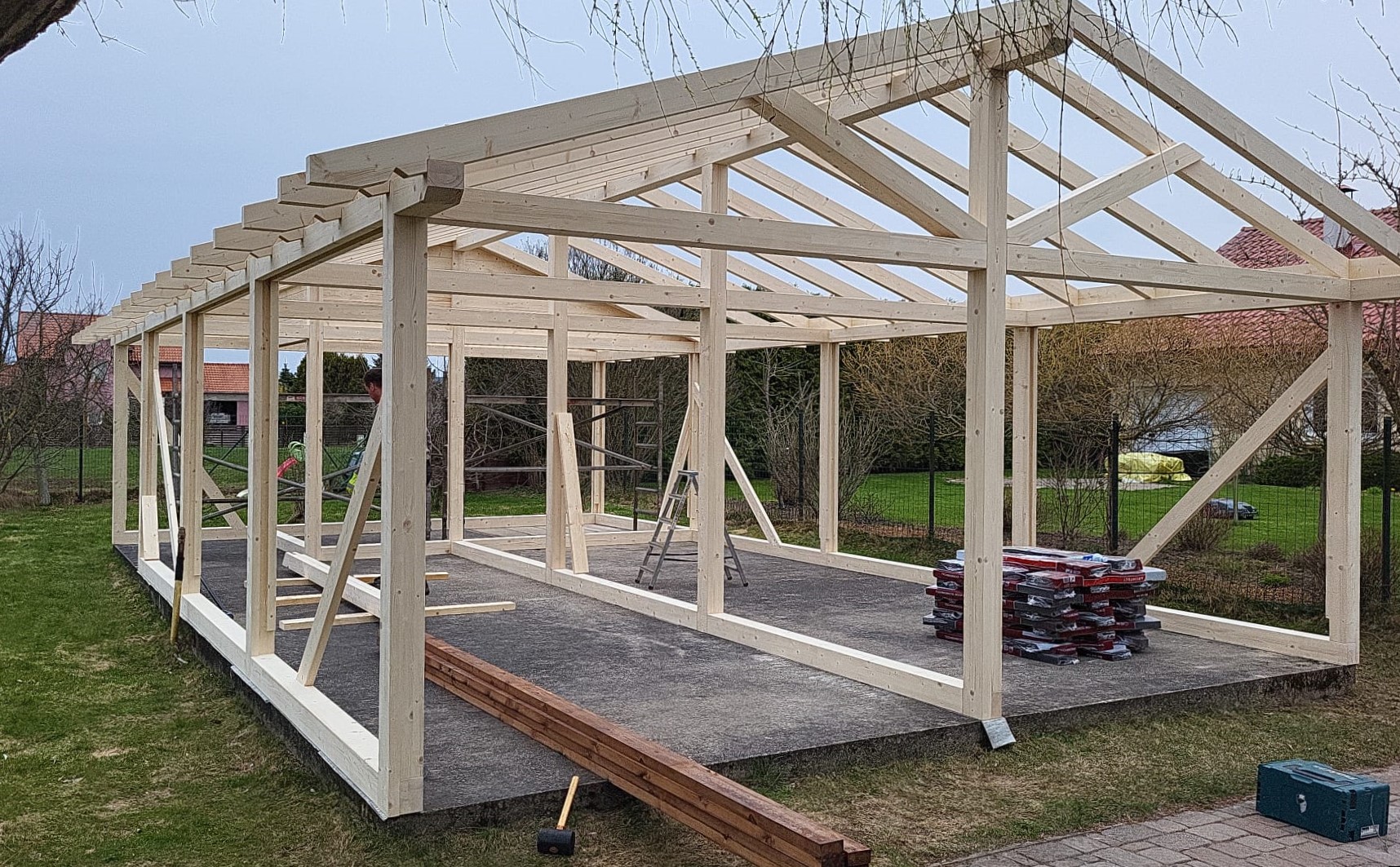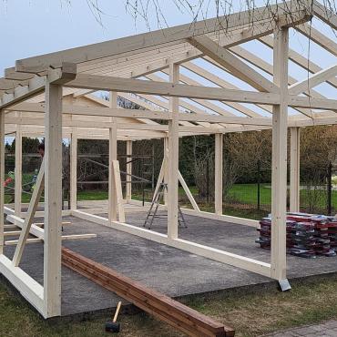 - Carport i limtre konstruksjon (70 % sterkere enn heltre):