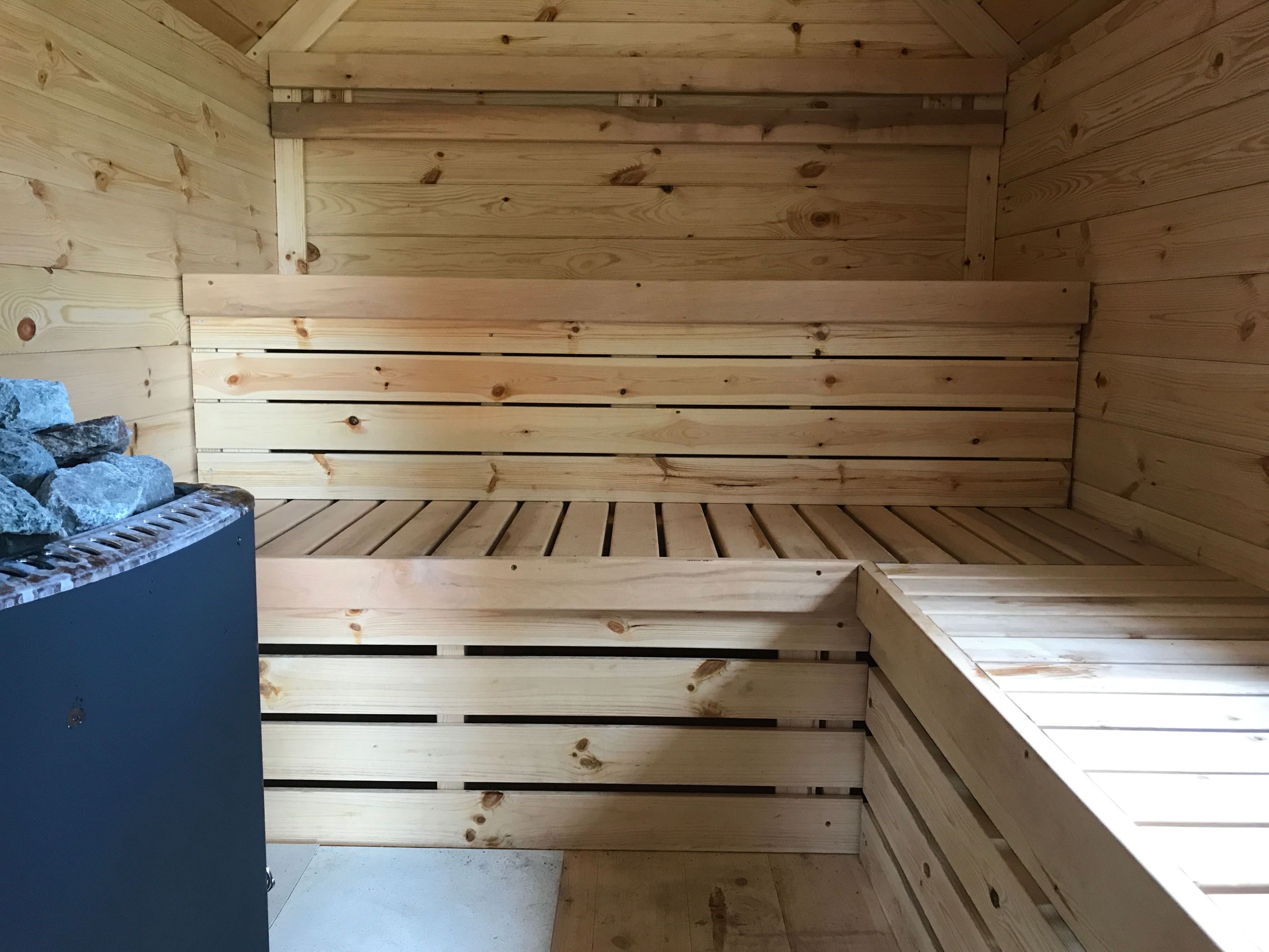 - Vedovn eller elektrisk til saunarom;