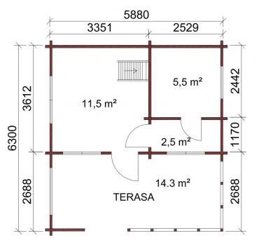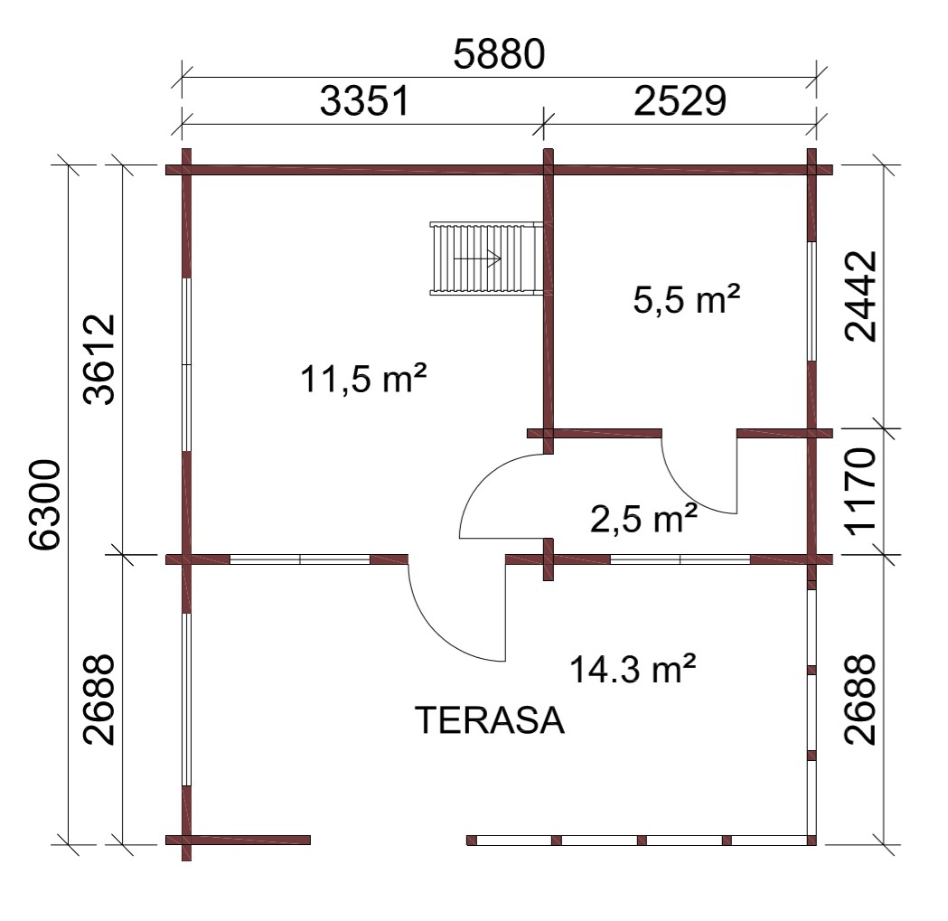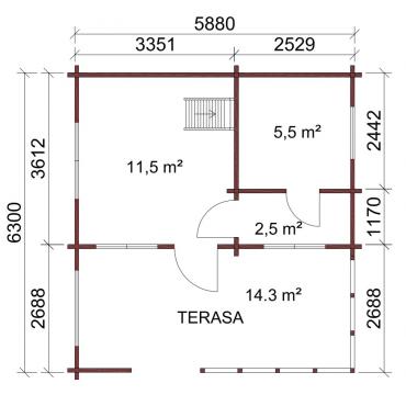 - Høyde på bjelkene 260 mm (laminert i tykkelse og høyde), noe som gir en mer solid struktur.