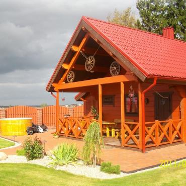 - Som fundament til terrassen (hvis en terrasse er planlagt) kommer høytrikkimpregnert bjelkelag.Terrasebord også høyttrykkimpregnerte;