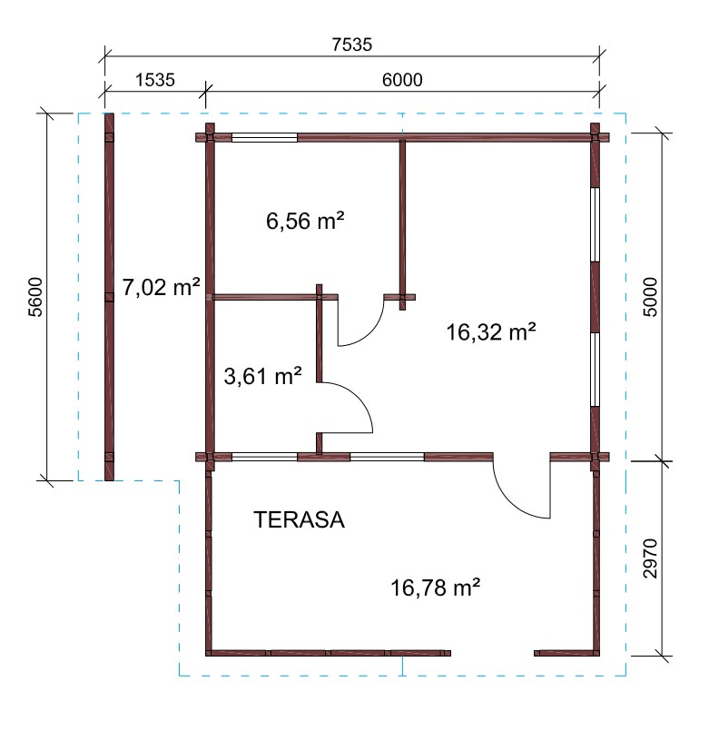 - Vegg og mellommvegg i limtre med laftehjørnet eller city hjørnet.Treramme mellomveg også mulig.
