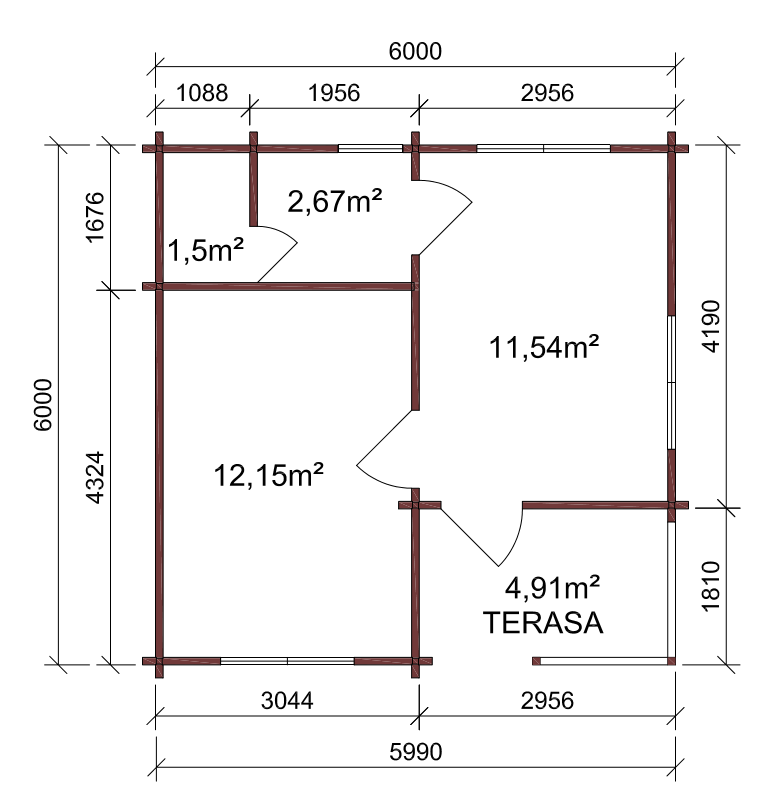 - Vegg og mellommvegg i limtre med laftehjørnet eller city hjørnet.Treramme mellomveg også mulig.