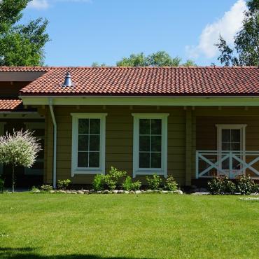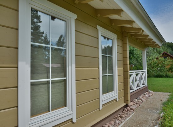 - Limtre vinduer og dører med isolerglass. Dekorativ treramme innvendig og utvendig;