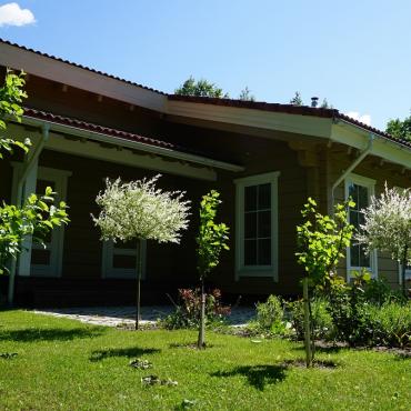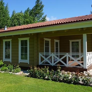 - Som fundament til terrassen (hvis en terrasse er planlagt) kommer høytrikkimpregnert bjelkelag.Terrasebord også høyttrykkimpregnerte;