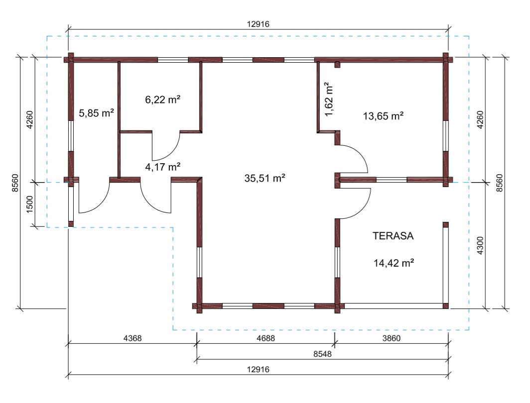 - Vegg og mellommvegg i limtre med laftehjørnet eller city hjørnet.Treramme mellomveg også mulig.