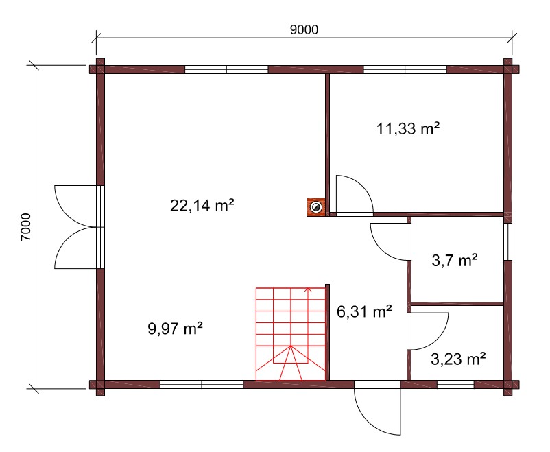 - Vegg isolering mulig på utsiden eller innsiden (treramme fylt med steinull eller ecowool, kledning med planker som imiterer tømmerstokker eller med andre typer materialer).