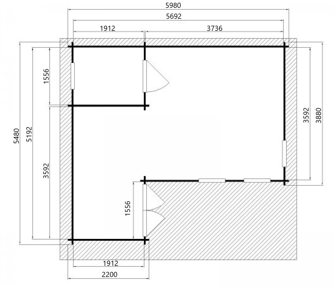 - Tykkere vegg (68 mm, 90 mm, 135 mm, etc.) mulig.