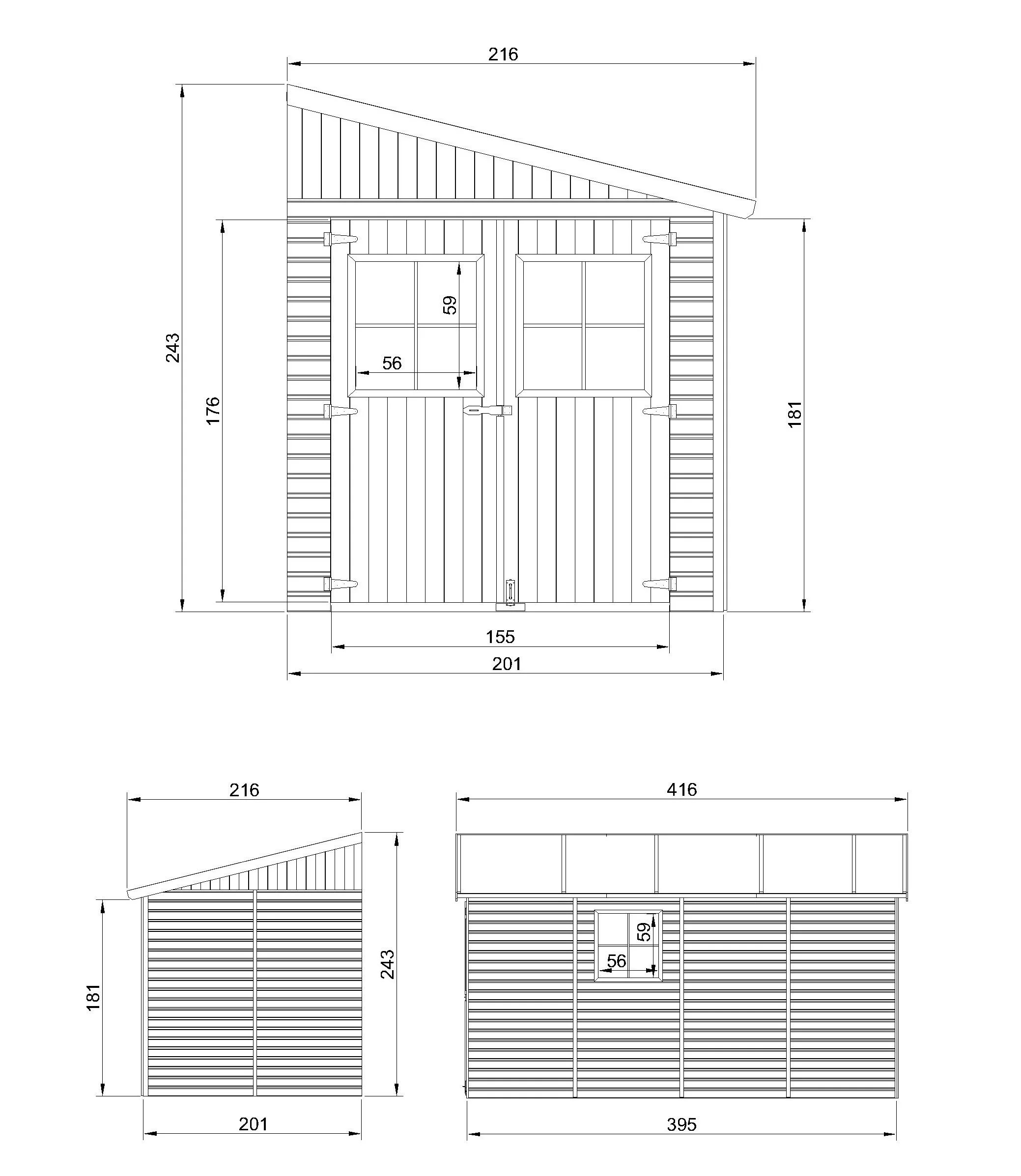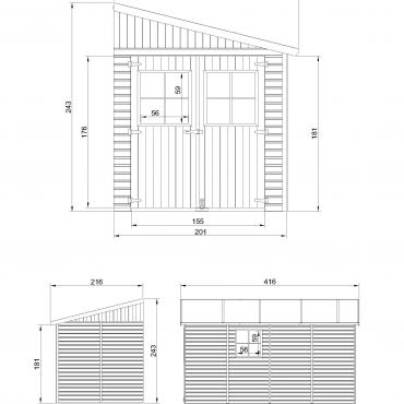 - Mål montert H243x216x416cm;