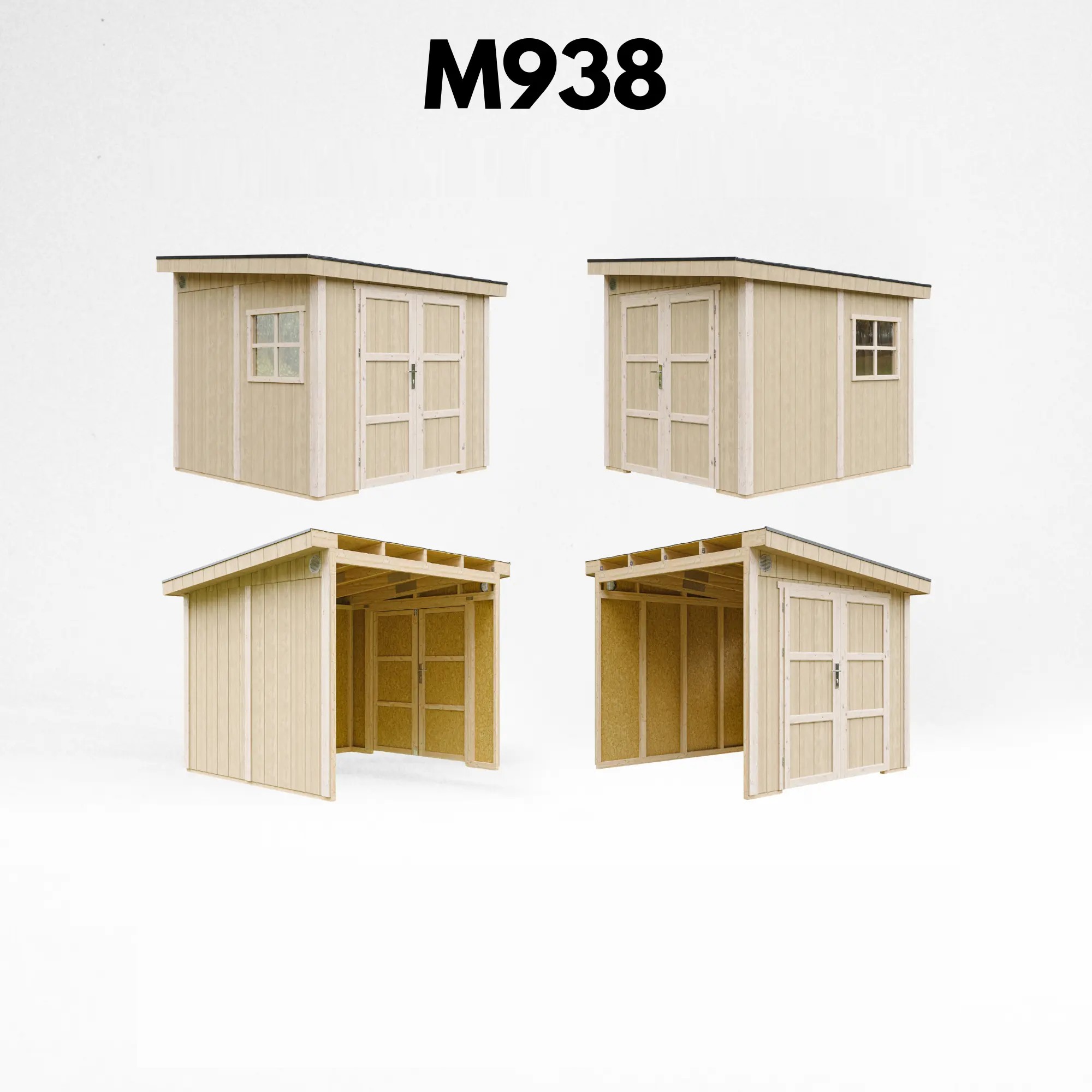 - Pakken inkluderer bitumen-shingeltak i grå farge, samt metallgesimser langs takets omkrets.