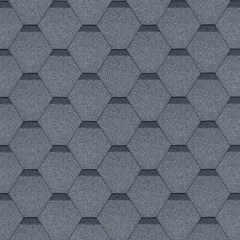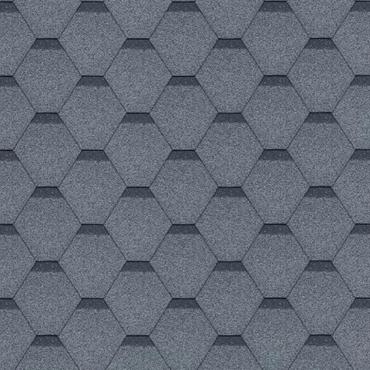 - Pakken inkluderer bitumen-shingeltak i grå farge, samt metallgesimser langs takets omkrets.